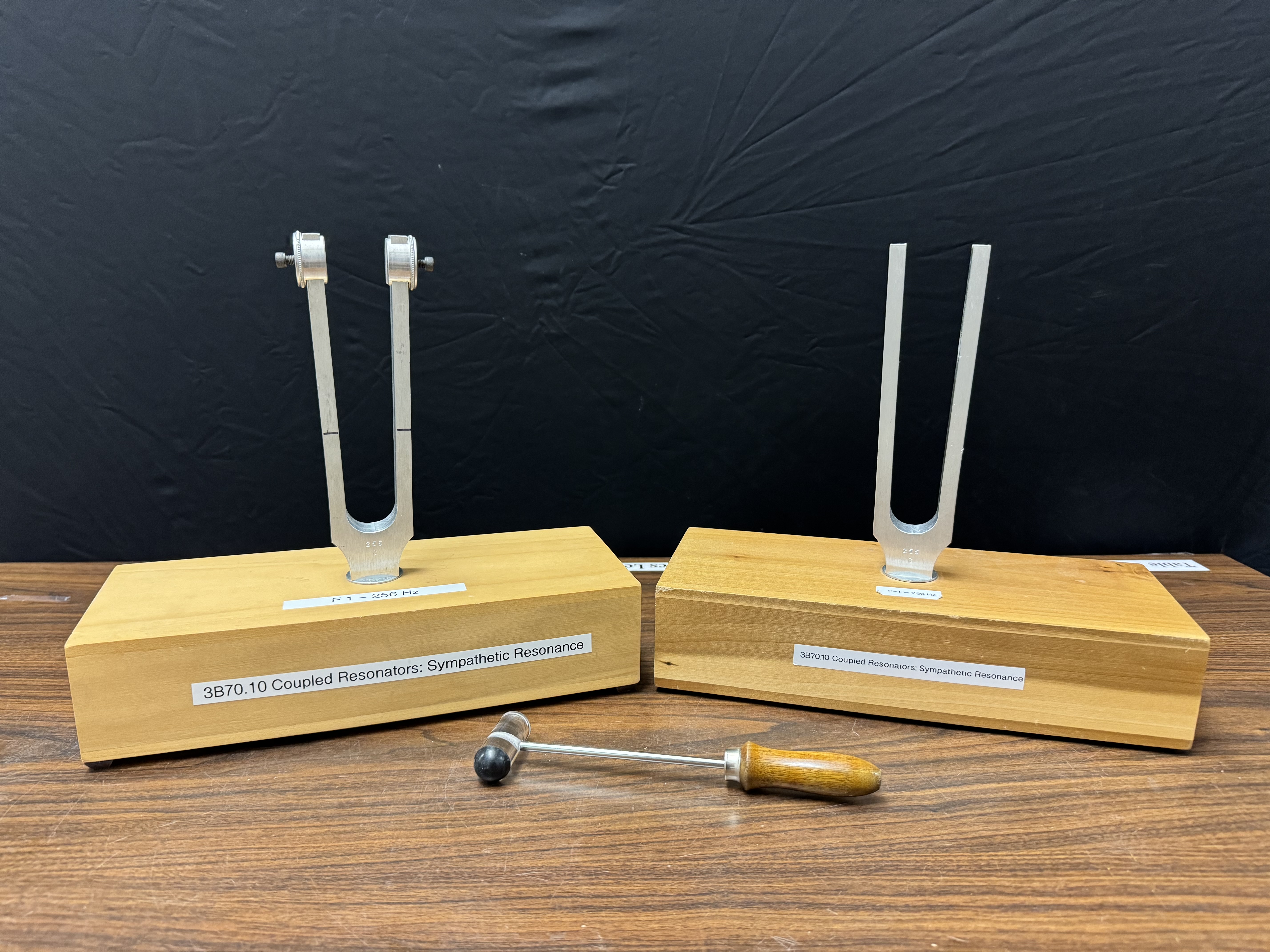 - Two tuning forks on resonance boxes are provided with a rubber mallet.