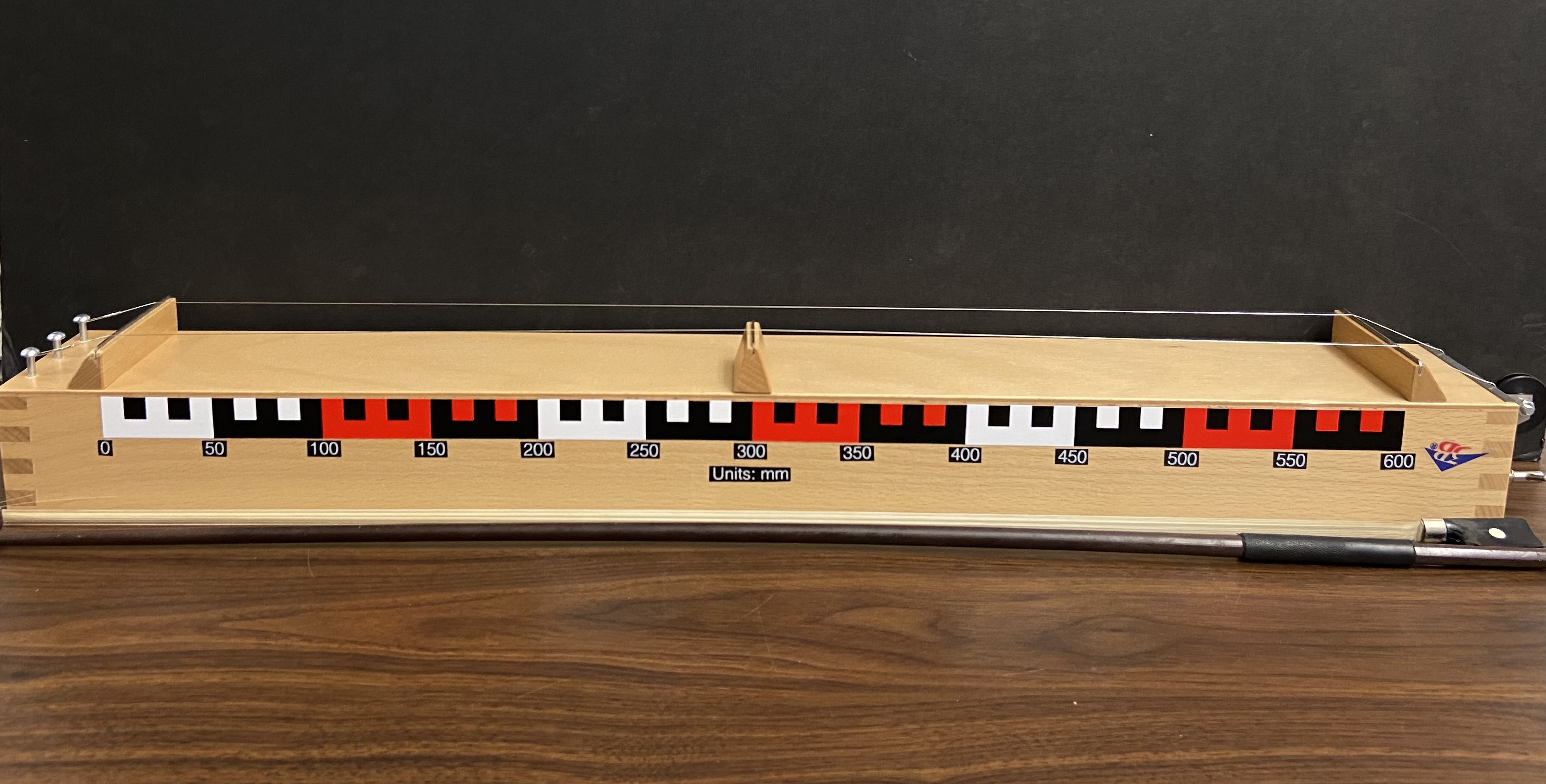 - Move the fret to the 200mm mark and play the longer string with the unfitted string in unison. This is a perfect fifth.
