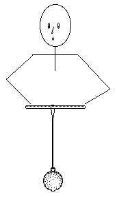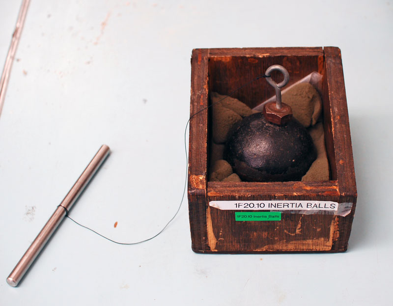 - A thin string is attached to a heavy steel ball, a metal bar/rod is attached to the other end of the string so that you can pull on it.