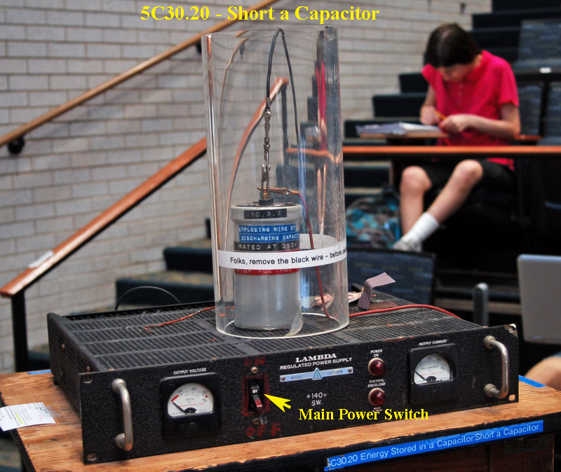 - This demo used a 400 μF capacitor and a 350 V power supply that requires flipping multiple switches.