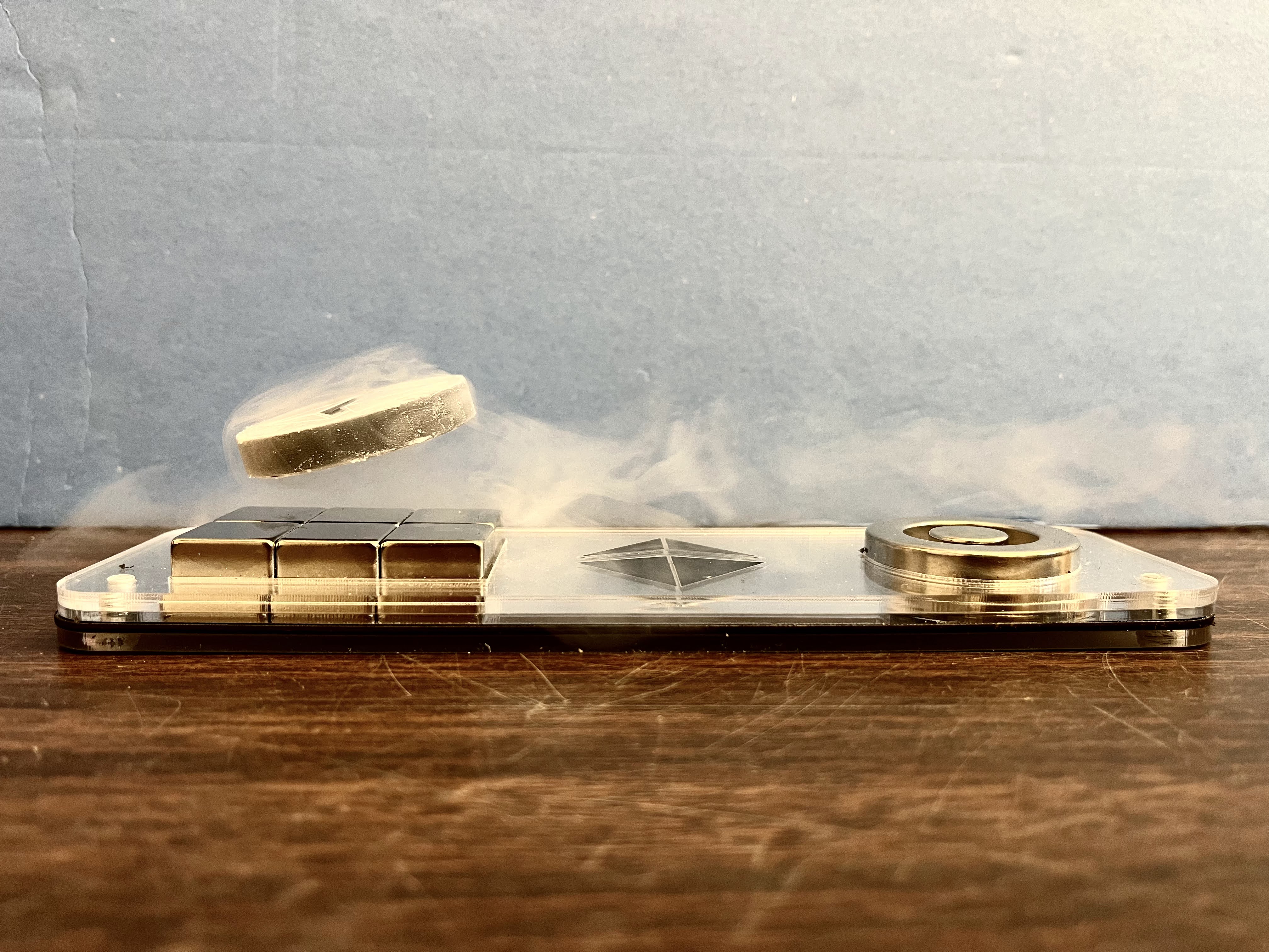 - The superconductor should be "locked" above it in the air. It should feel stable and resist being moved.