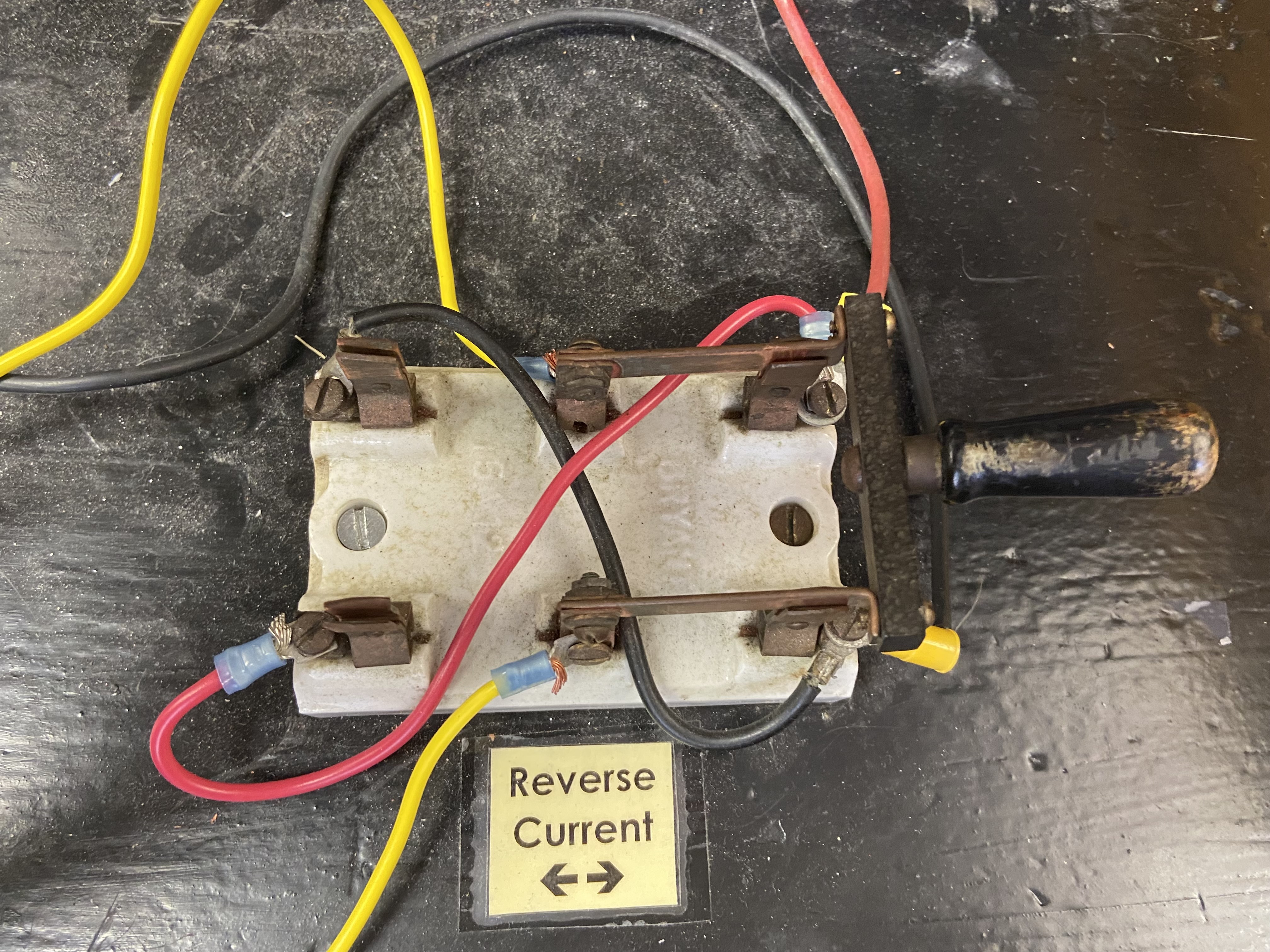 - A second knife switch on the Faraday cart selects the option between this demonstration and two other demonstrations that induce a current into the wire.