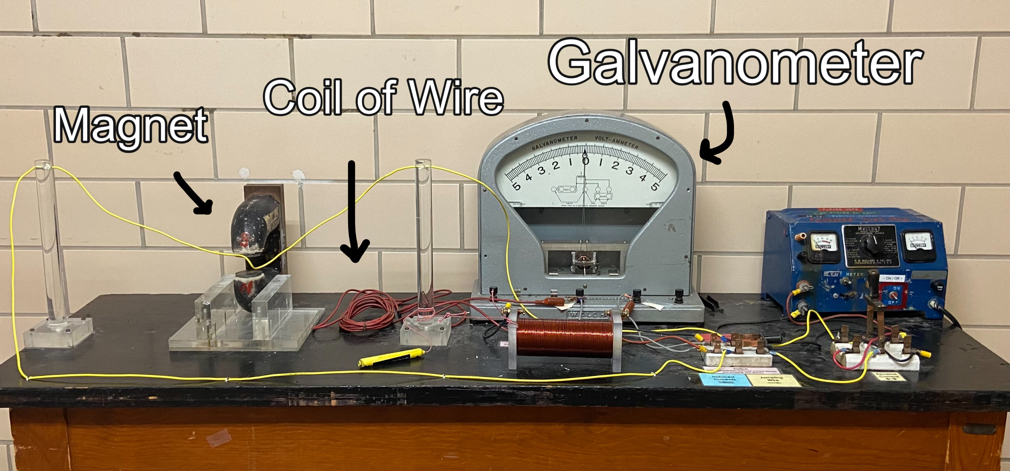 - Demonstration shows the current induced in a single loop of wire when moved back and forth through a B-Field.