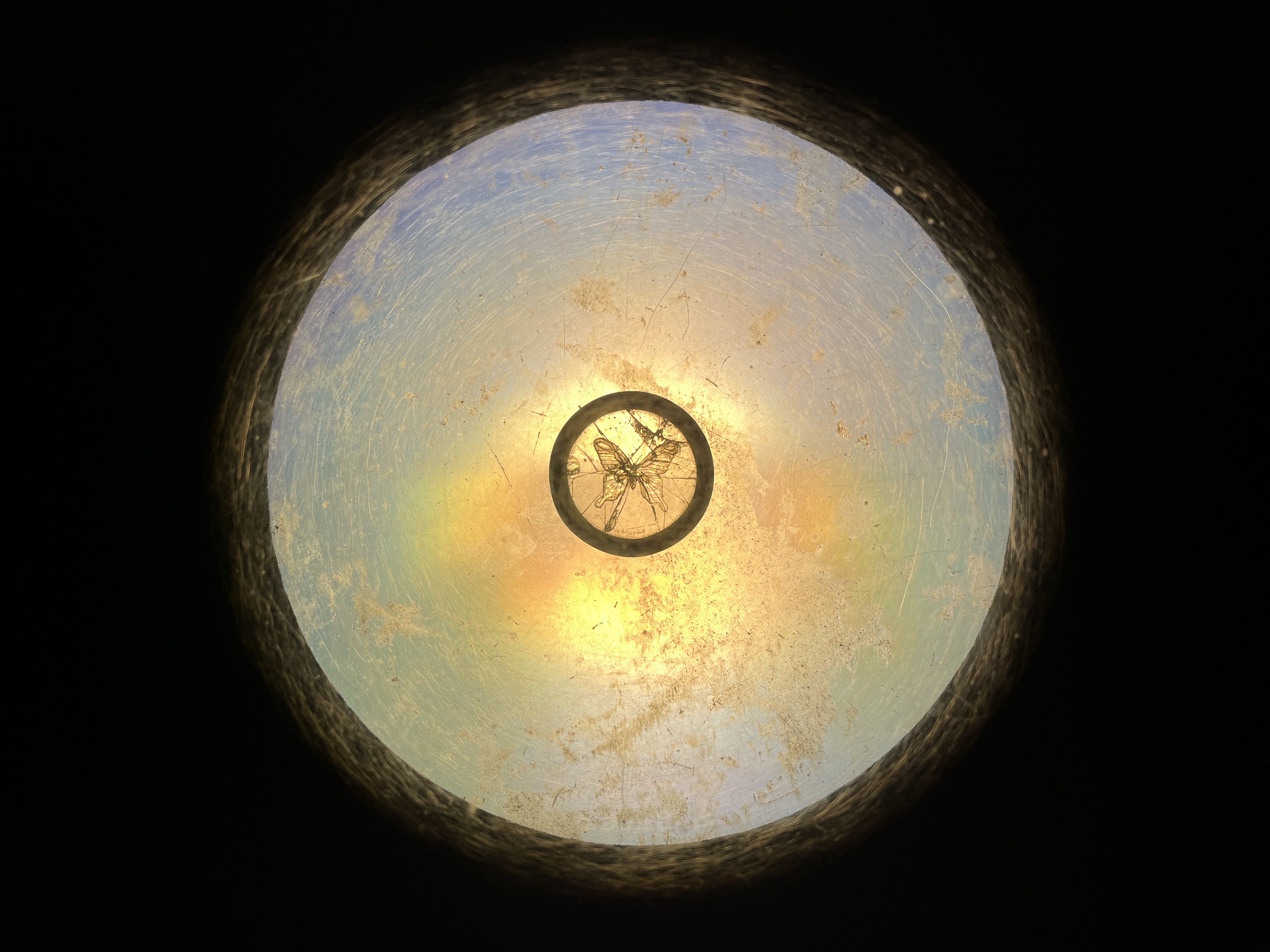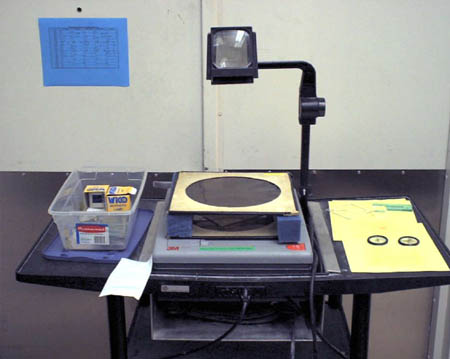 - Two polaroid sheets are sandwich above and below two provided foam spacers on the overhead projector.