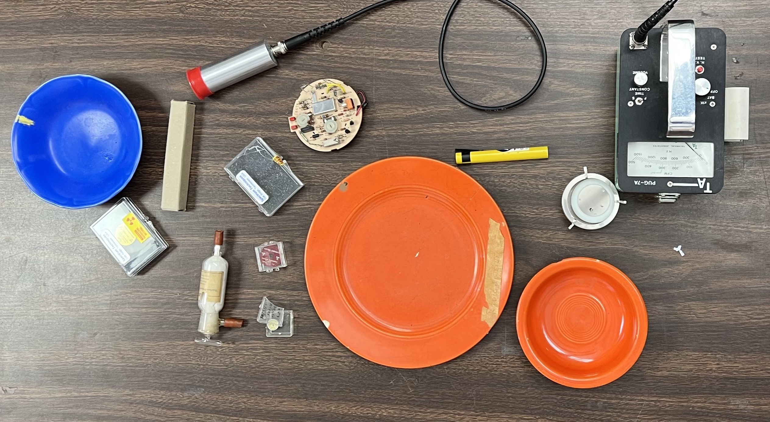 - Samples include standardized sources, uranium ore, and "Fiesta-ware" (dishes glazed with a radioactive material).