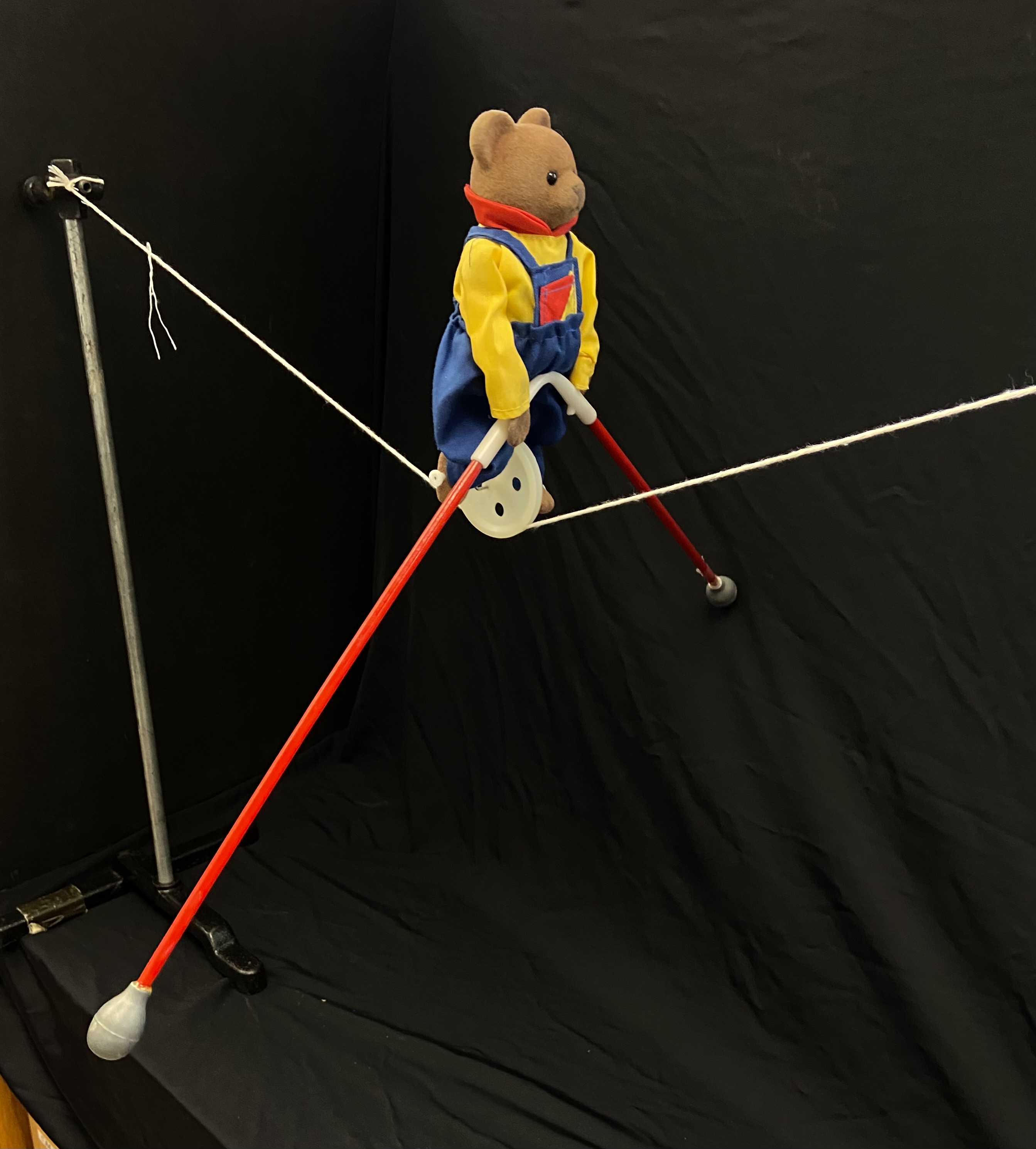 - This demonstration includes a toy bear (His name is Paddy!), 2 pairs of weights, and a tightrope made of string.