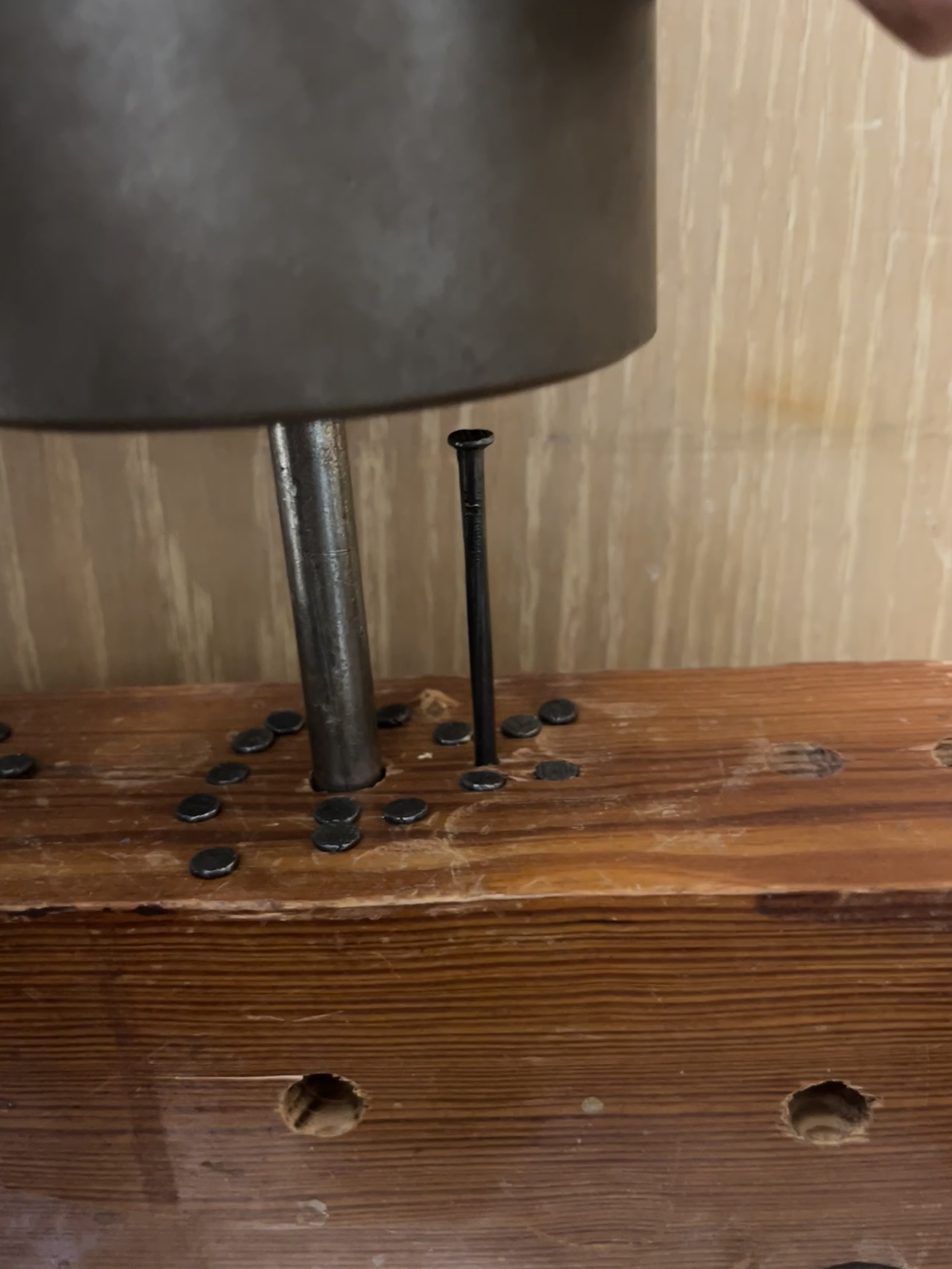 - Drop a weight onto a nail in a 4" x 4" piece of wood.