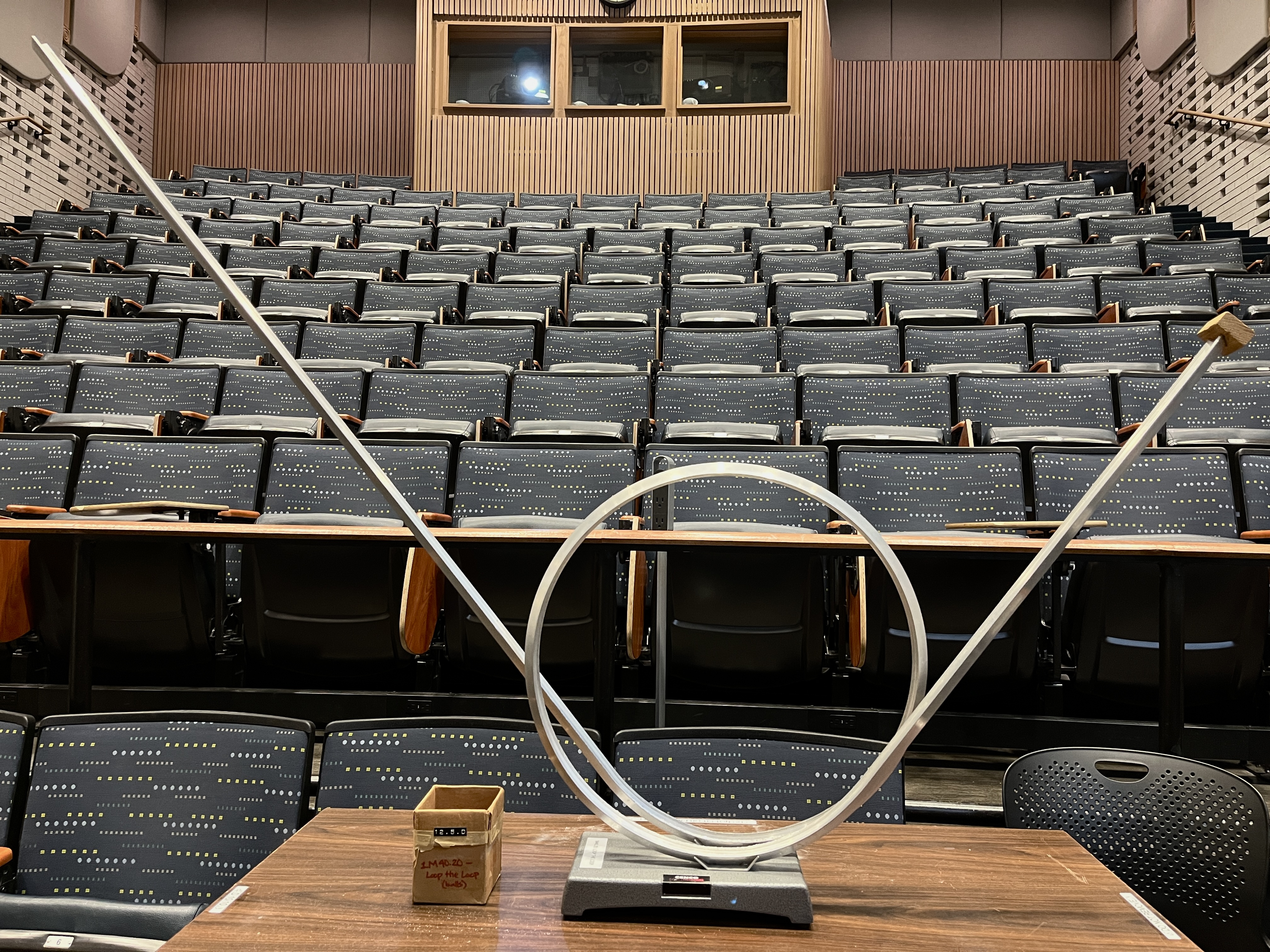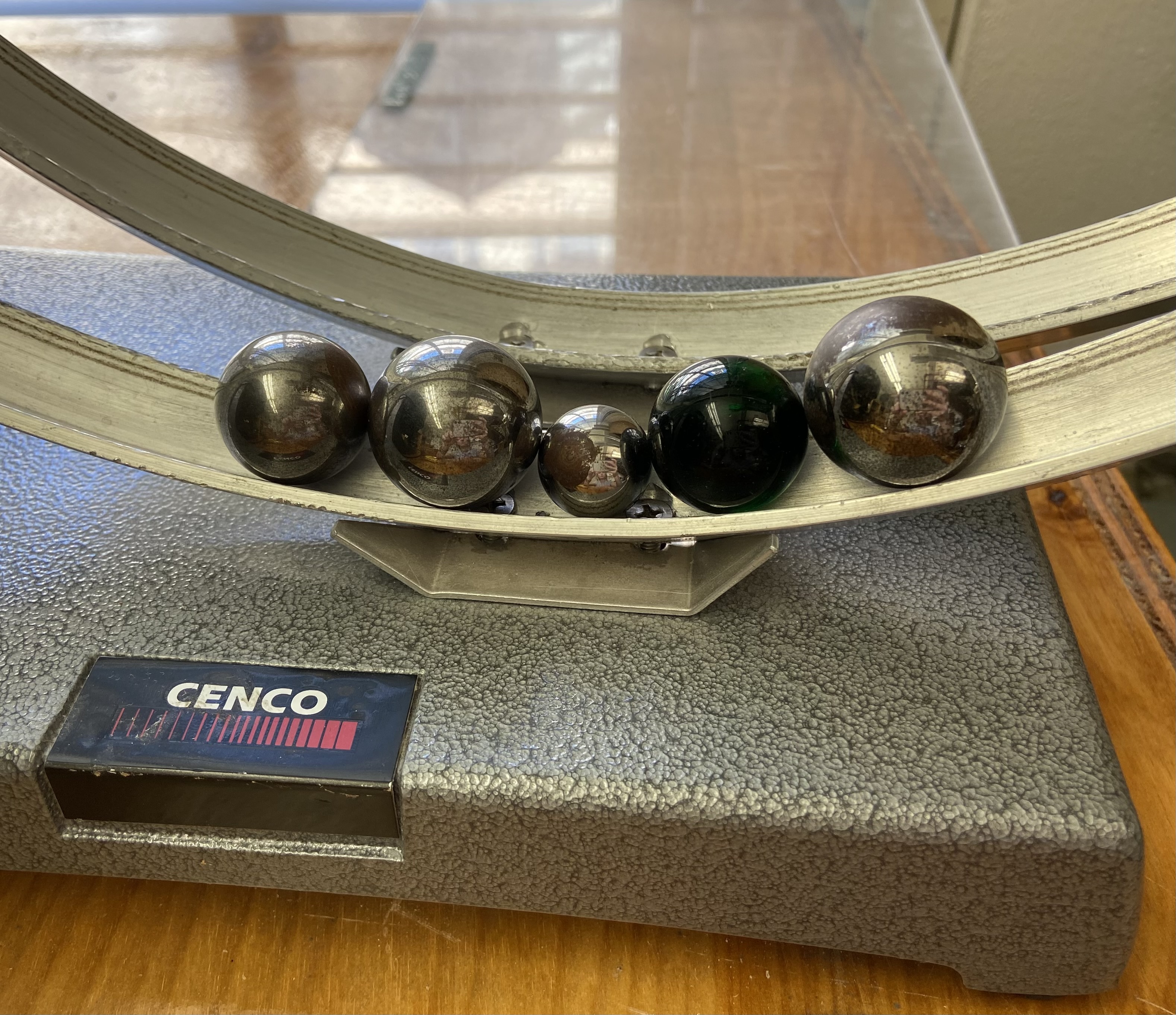 - Demonstration comes with a brass roller coaster and metal balls of varying mass.