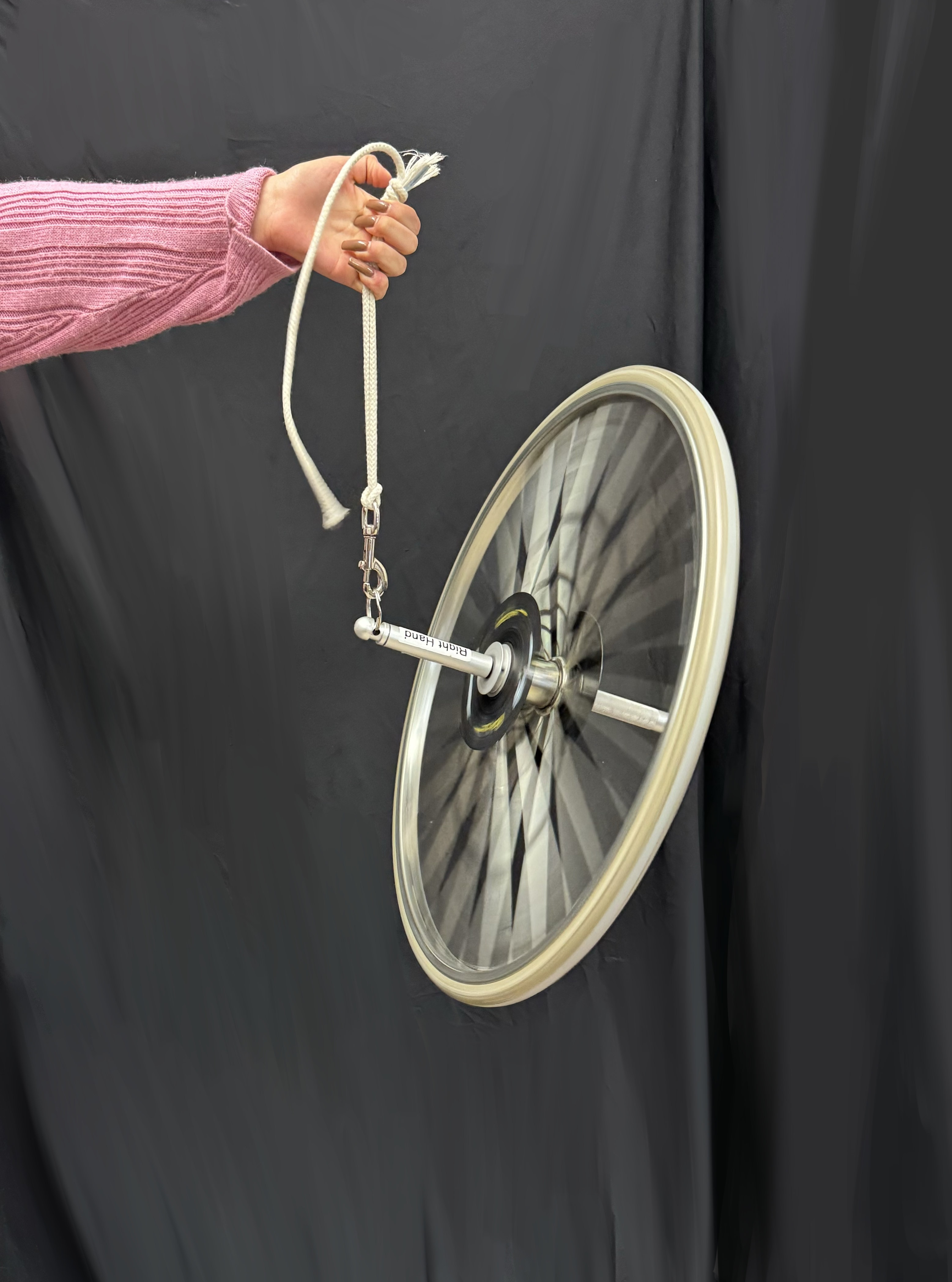 - Precession begins to occur immediately. Lift bicycle by string to demonstrate.