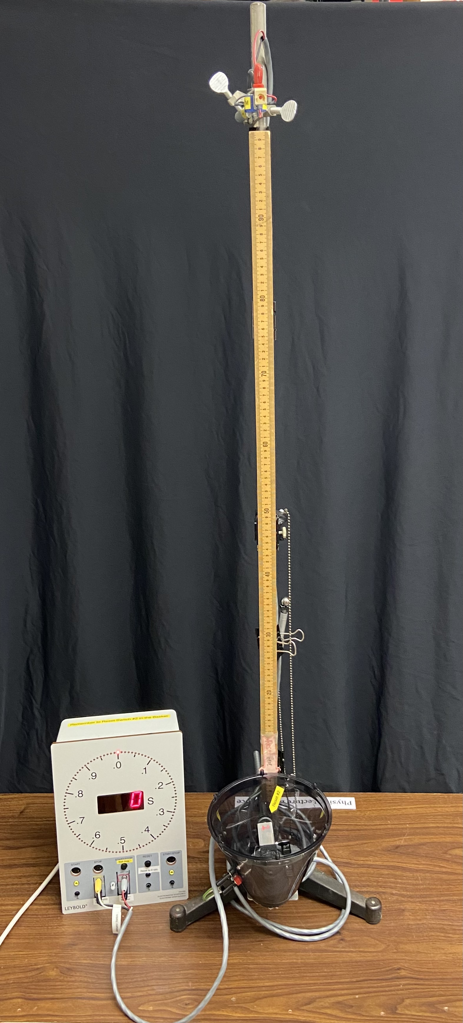 - The distance between the electromagnet at the top of a ring stand and the interruptor switch is one meter.
