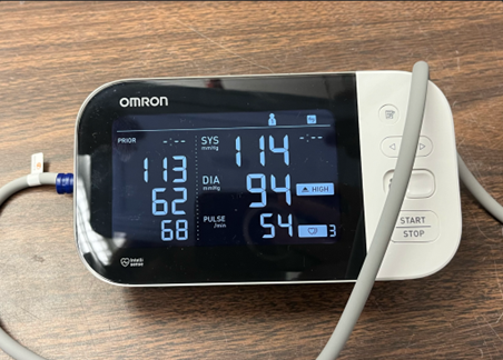- Diastolic is when the heart rests between beats (middle number on the right, labeled 'DIA').